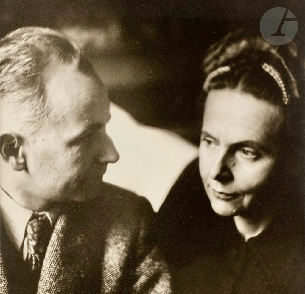 Photographie de Louis Aragon et Elsa Triolet, circa 1945, par Isis Bidermanas (1911-1980). Source.