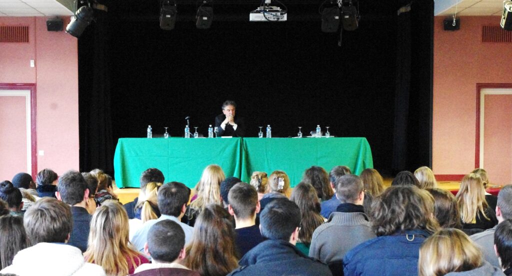 Michel Crépu, devant les élèves des classes préparatoires du lycée Pierre d’Ailly