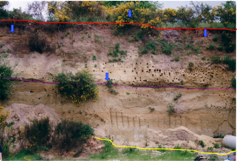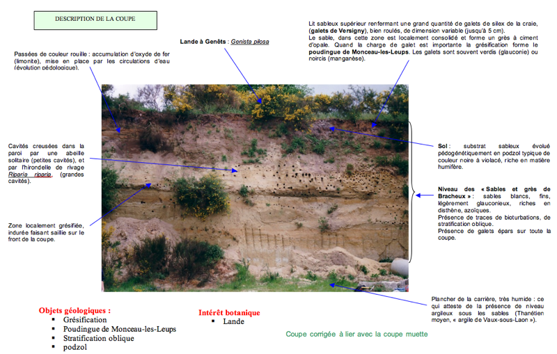 Le front de taille est visible de la route, à droite, après le carrefour avec le chemin empierré qui va vers la réserve naturelle de la « Lande de Versigny »