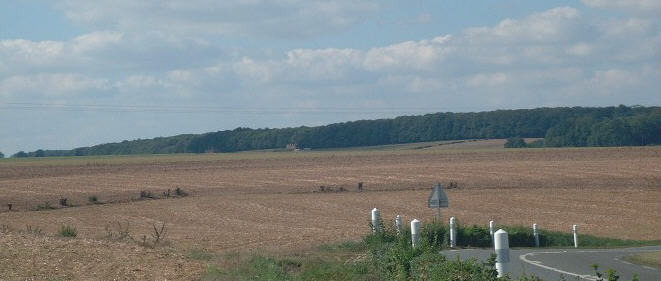 Panorama : entre Crèvecœur le Grand et Hétomesnil, la surface crayeuse est barrée par un relief couvert de forêt. Il s’agit d’un ancien cordon de galet. Il est possible de garer un car sur un parking aménagé sur la droite de la route avant le sommet de la côte.