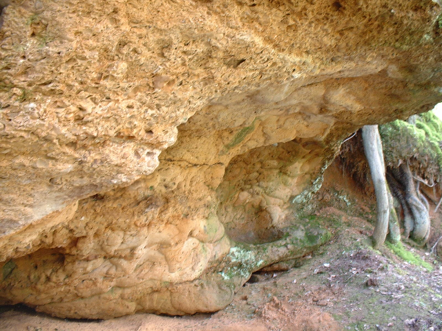La strate qui surmonte cette première formation et comportant des moules d’animaux marins prouve que le niveau de la mer a monté. Cette interprétation se confirme si on considère le joint de stratification plan. Ce contact prouve une érosion préalable au dépôt des sables à mollusques.