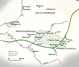 L’ensemble des arrêts permet de se faire une idée des conditions paléogéographiques qui expliquent l’organisation des différents dépôts. Les galets de silex verdis de Therdonne conduisent à admettre une transgression calme mais de grande ampleur conduisant à un phénomène d’upwelling. Le climat chaud que semble requérir ce mécanisme est corroboré par la présence de palmiers.